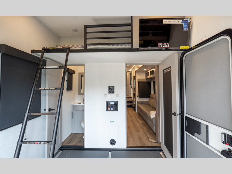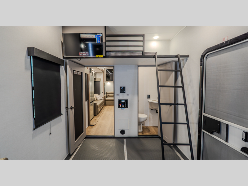 Alliance RV Valor toy hauler 44V14 highlights: Loft Bath and a Half Fireplace ... more about Valor 44V14