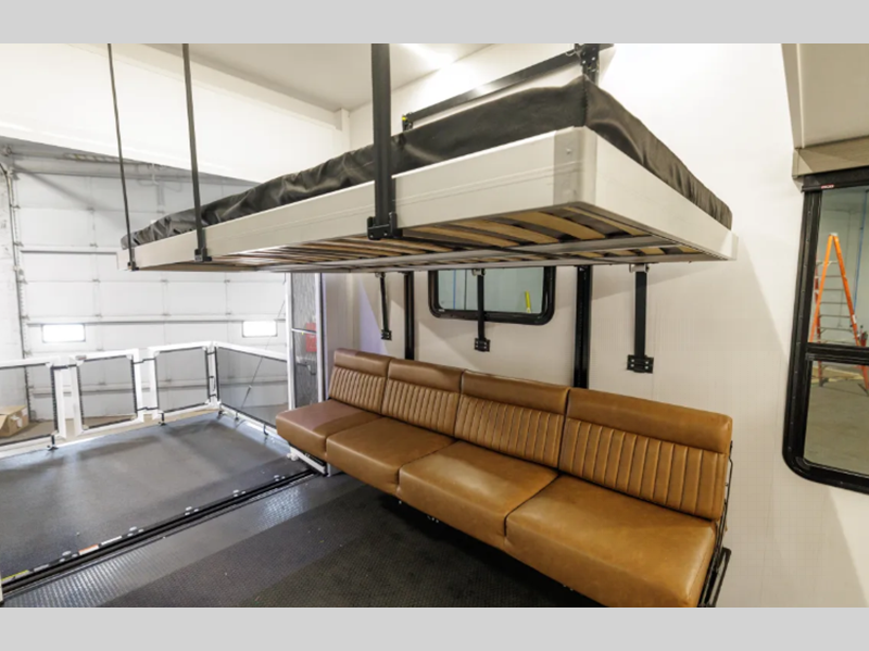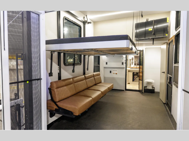 The patent-pending rear-mount generator system leads to an impressive pass-through storage space, and you'll have the best-in-class heating and cooling thanks to the patent-pending Mini-Split HVAC system. The tallest ceilings in its class will make your space feel more like home, along with hardwood cabinet doors, solid surface kitchen countertops and many more comforts.