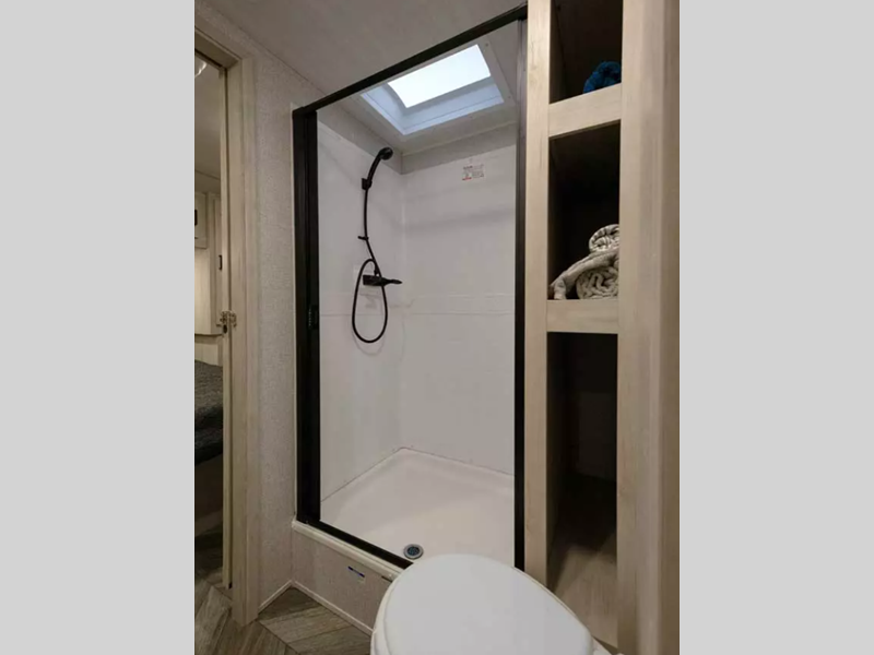 Each is built with an enclosed and heated underbelly plus enclosed holding tanks for four seasons of travel, and include a power tongue jack with an LED light for easy setup day or night. The interior includes seamless pressed countertops, upgraded design package, an 81" ceiling height, plus many more comforts. You will be able to do and see more with the Adventure Outdoor Package with a universal docking station, solar prep, an outside shower, and more!