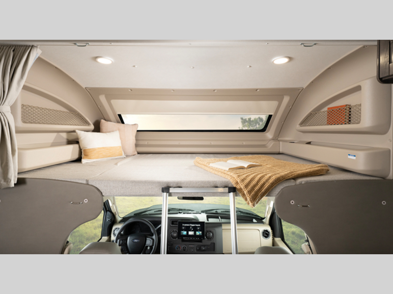 - Overhead bunk with 750 lb. capacity and safety net; Custom-molded ABS surround in cab-over area; Wall-mounted tablet holder in each bunk (31F)