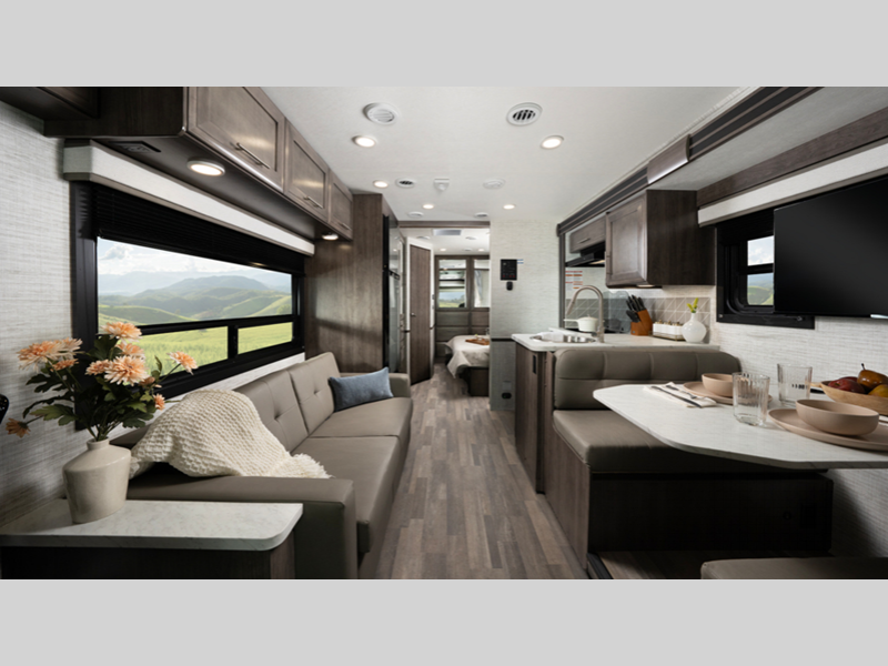 Sleeps 4 Slides 2 Length 29 ft 11 in Ext Width 8 ft 5 in Ext Height 12 ft 5 in Int Height 7 ft Interior Color Ashbrook Exterior Color Standard Graphics Hitch Weight 5000 lbs GVWR 18000 lbs Fresh Water Capacity 72 gals Grey Water Capacity 50 gals Black Water Capacity 49 gals Tire Size 245/70R19.5 Furnace BTU 30000 btu Generator 4,000W Fuel Type Gasoline Engine 7.3L V8 Chassis Ford F53 Horsepower 335 hp Fuel Capacity 80 gals Wheelbase 190 in Available Beds King Torque 468 ft-lb Refrigerator Type 12V Refrigerator Size 10 cu ft Convection Cooking Yes Cooktop Burners 2 Shower Size 30" x 36" Number of Awnings 1 Axle Weight Front 7000 lbs Axle Weight Rear 12000 lbs LP Tank Capacity 16.5 gals. Water Heater Capacity 6 gal Water Heater Type Gas/Electric DSI AC BTU 15000 btu TV Info LR LED HD Smart TV Awning Info 18' Electric w/LED Lights Gross Combined Weight 23000 lbs Shower Type Standard Electrical Service 30 amp Similar Floorplans