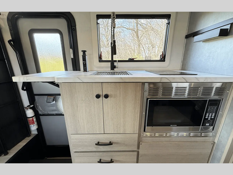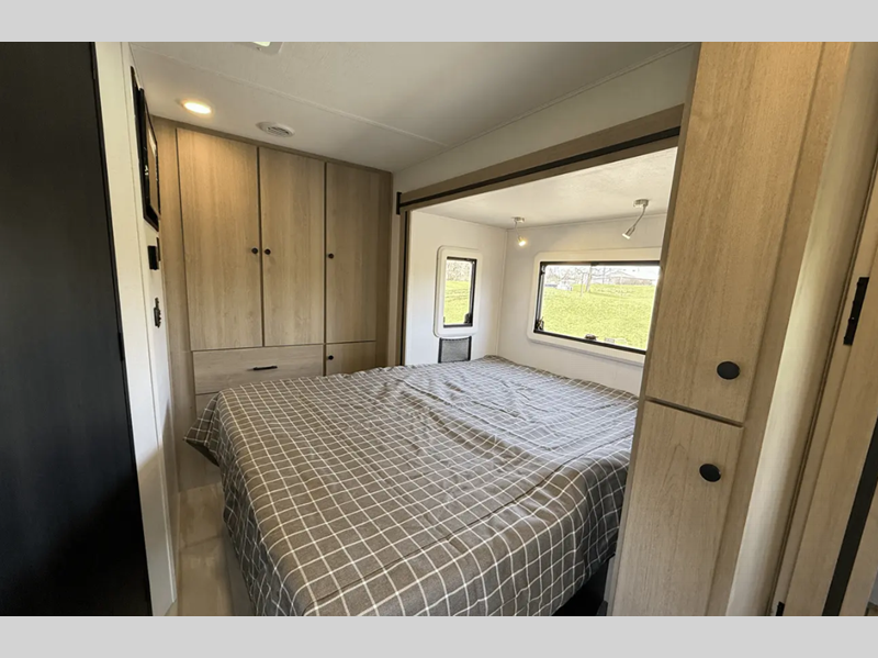 Some of the top features include a fiberglass laminated roof, a Winegard Air 360+ digital antenna to stay connected as you camp, plus a 10.7 cu. ft. 12V refrigerator for plenty of food storage. There is also an outside shower, a power awning with LED lights, and an optional 12V solar charging system for off-grid capabilities! Interior comforts include black out roller shades, an oxygen-infused shower head, soft touch self-closing drawer guides, and so much more!