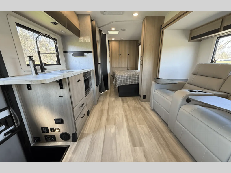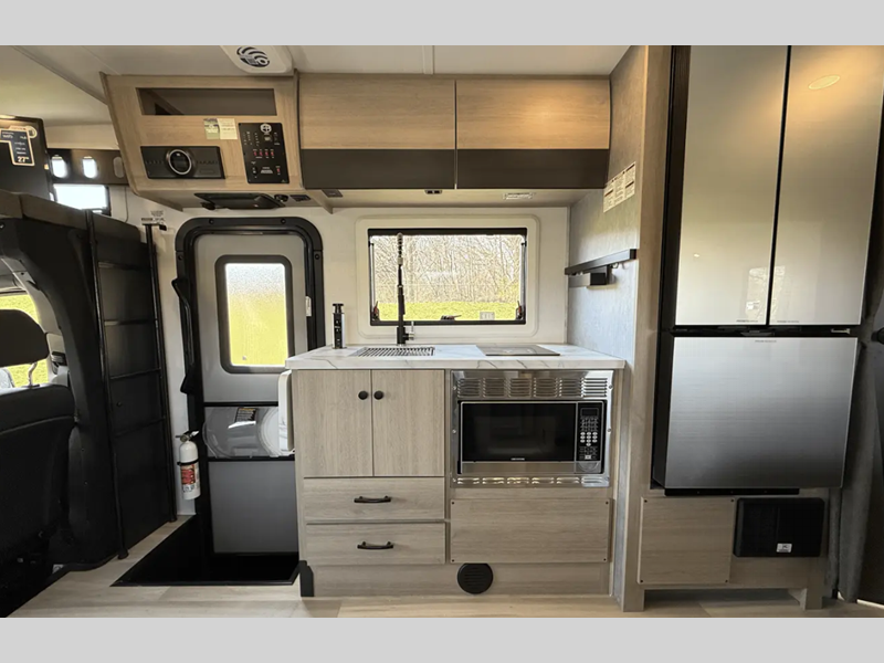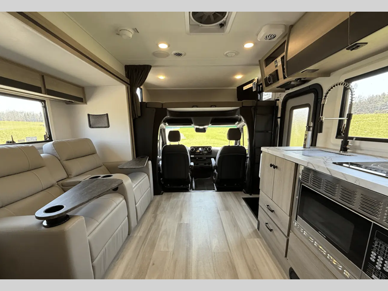 Sleeps 4 Slides 1 Length 25 ft 5 in Ext Width 7 ft 11 in Ext Height 11 ft 3 in Int Height 6 ft 9 in Exterior Color Full Body Paint Options Hitch Weight 4200 lbs GVWR 11030 lbs Fresh Water Capacity 35 gals Grey Water Capacity 32 gals Black Water Capacity 32 gals Furnace BTU 30000 btu Generator 4000W LP Fuel Type Diesel Chassis Mercedes-Benz 3500 Fuel Capacity 26 gals Wheelbase 170 in Number Of Bunks 1 Available Beds Queen Murphy Refrigerator Type 12V Refrigerator Size 10.7 cu ft Convection Cooking Yes Cooktop Burners 1 Shower Size 24" x 36" Number of Awnings 1 Axle Weight Front 4080 lbs Axle Weight Rear 7720 lbs LP Tank Capacity 56 lbs Water Heater Capacity 6 gal Water Heater Type DSI Gas/Electric AC BTU 15000 btu TV Info LR 12V LED TV, BR 12V TV Awning Info 15' 6" Power w/LED Light Strip Gross Combined Weight 15250 lbs Shower Type Standard Electrical Service 30 amp Similar Floorplans