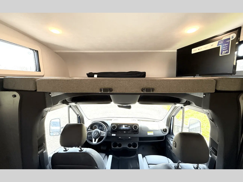 Sleeps 2 Slides 1 Length 25 ft 4 in Ext Width 7 ft Ext Height 11 ft 4 in Int Height 6 ft 9 in Exterior Color Full Body Paint Options Hitch Weight 4200 lbs GVWR 11030 lbs Fresh Water Capacity 35 gals Grey Water Capacity 32 gals Black Water Capacity 32 gals Furnace BTU 30000 btu Generator 4000W LP Fuel Type Diesel Chassis Mercedes-Benz 3500 Fuel Capacity 26 gals Wheelbase 170 in Available Beds Murphy Refrigerator Type 12V Refrigerator Size 10.7 cu ft Convection Cooking Yes Cooktop Burners 1 Shower Size 24" x 36" Number of Awnings 1 Axle Weight Front 4410 lbs Axle Weight Rear 7720 lbs LP Tank Capacity 56 lbs Water Heater Capacity 6 gal Water Heater Type DSI Gas/Electric AC BTU 15000 btu TV Info LR 12V 40" LED TV, Cab 12V TV Awning Info 15' 6" Power w/LED Light Strip Gross Combined Weight 15250 lbs Shower Type Standard Electrical Service 30 amp Similar Floorplans