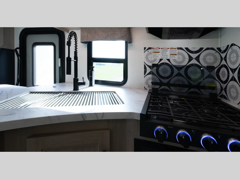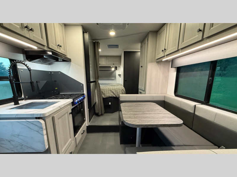 Each model includes the EZ Ryde premium suspension for an exception driving experience, along with a 10" touchscreen CarPlay/Android radio with USB and Bluetooth so you can listen to your favorite tunes as you travel. There is a keyless entry you are sure to appreciate plus blackout roller shades in the living room and bedroom for added privacy. Each coach also features a gel coat exterior fiberglass, a fiberglass roof and 2" aluminum framed laminated sidewalls for added durability.