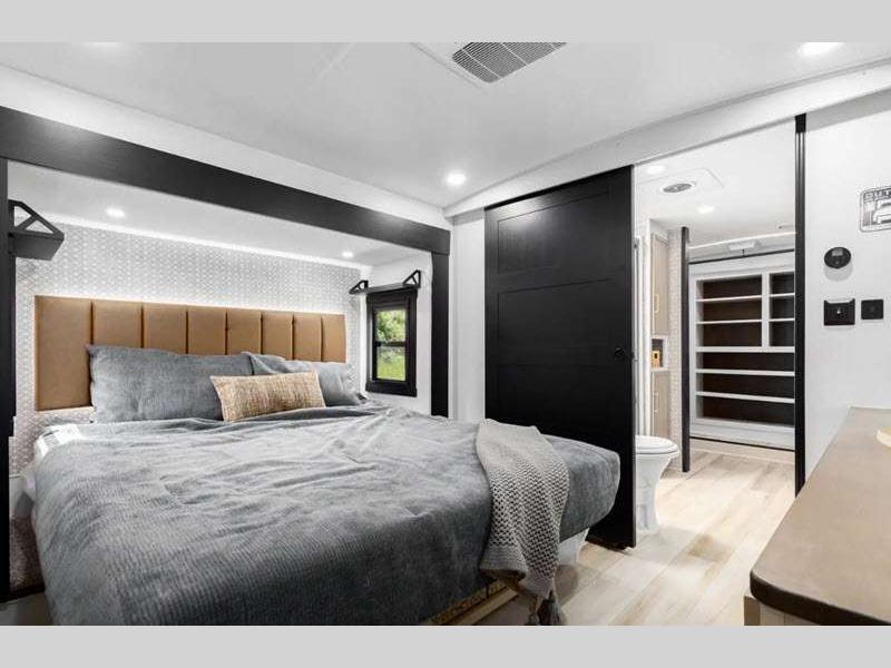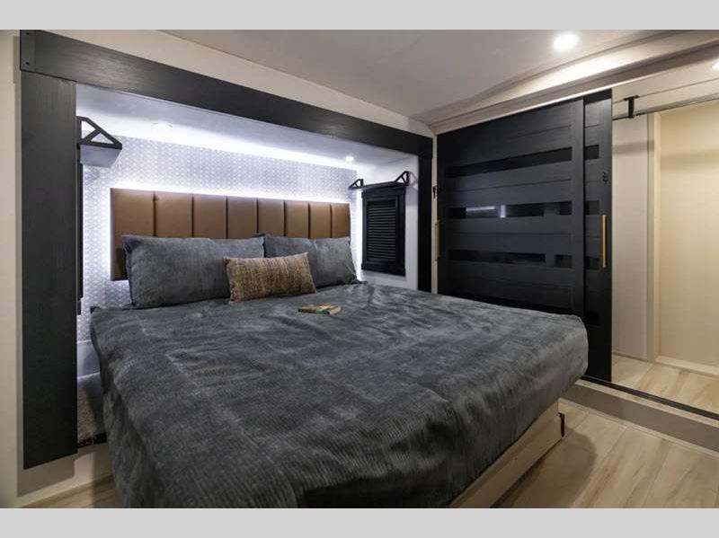 - Full-Profile Front Cap with HUGE Functional Wardrobe (378FL Uses Panoramic Windshield in-place-of Wardrobe)