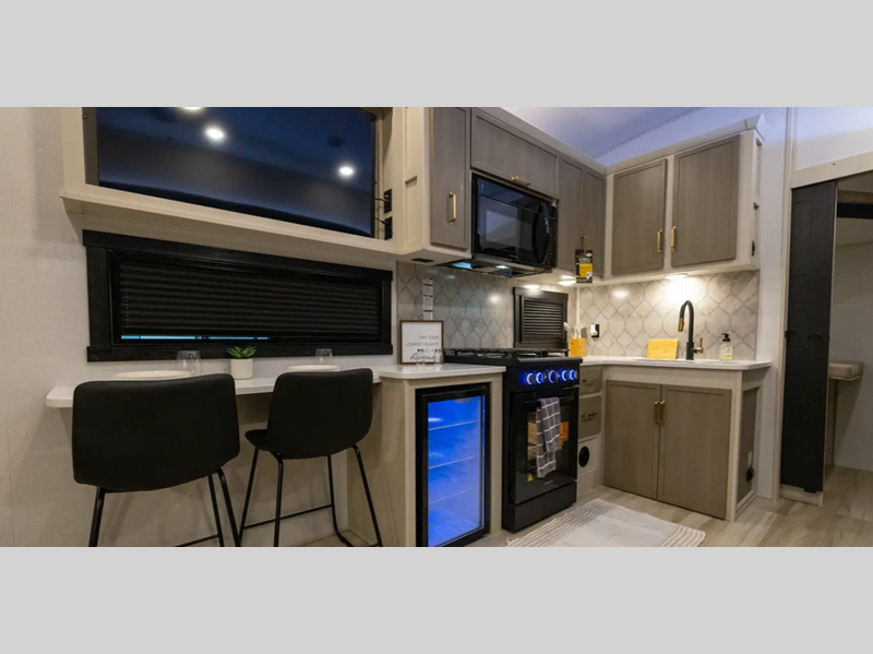 Sleeps 4 Slides 3 Available Beds Custom King Refrigerator Type 12V Refrigerator Size 16 cu ft Cooktop Burners 3 Number of Awnings 1 Water Heater Type On Demand Tankless AC BTU 33000 btu TV Info LR 50" LED Smart TV Awning Info Electric with LED Lights Axle Count 2 Washer/Dryer Available Yes Shower Type Standard Similar Floorplans