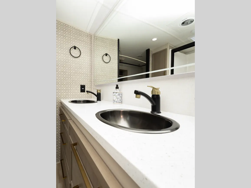 - Gold-Accented Faucets with Stainless Steel Sinks in all Bathrooms