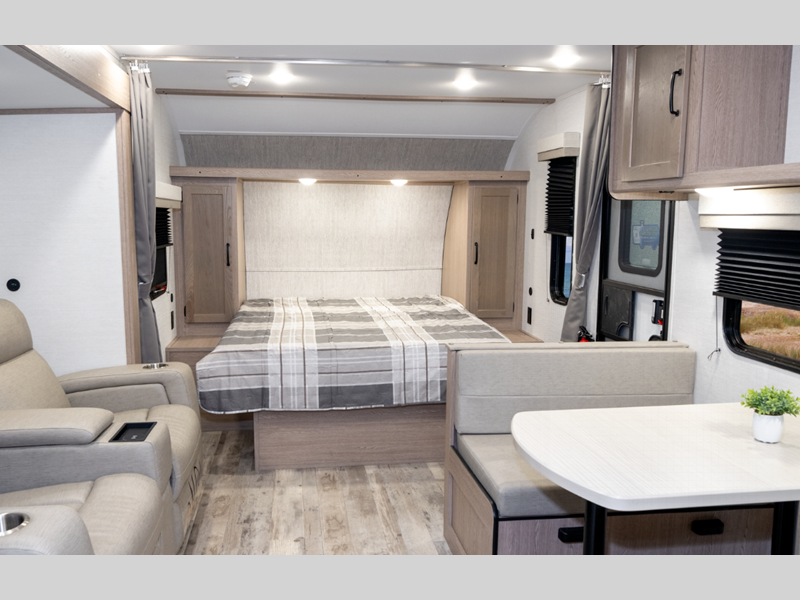 Sleeps 5 Slides 1 Length 23 ft 4 in Ext Width 8 ft Ext Height 10 ft 6 in Int Height 6 ft 8 in Hitch Weight 530 lbs Dry Weight 4430 lbs Cargo Capacity 1300 lbs Fresh Water Capacity 35 gals Grey Water Capacity 34 gals Black Water Capacity 34 gals Furnace BTU 20000 btu Number Of Bunks 2 Available Beds Queen Refrigerator Type Everchill Refrigerator/Freezer Refrigerator Size 10.7 cu ft Cooktop Burners 3 Number of Awnings 1 LP Tank Capacity 20 lbs Water Heater Type Tankless AC BTU 13500 btu Awning Info Electric with LED Lights Axle Count 2 Number of LP Tanks 1 Shower Type Tub/Shower Combo Electrical Service 30 amp Similar Floorplans