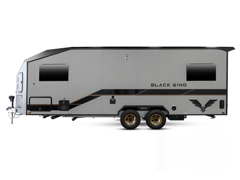 The new Black Wing toy haulers by inTech RV are built for adventure, just like you are! These travel trailers feature a rugged design, a spacious and versatile interior, plus a fully welded cage and frame construction for added durability.