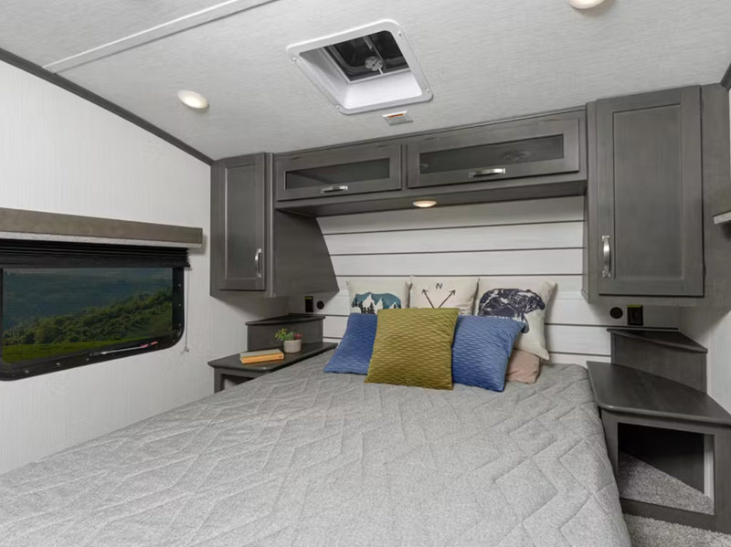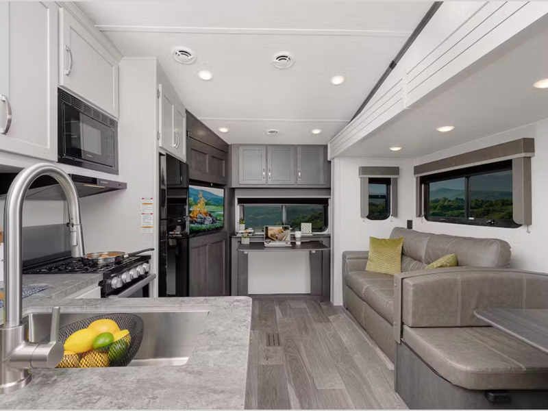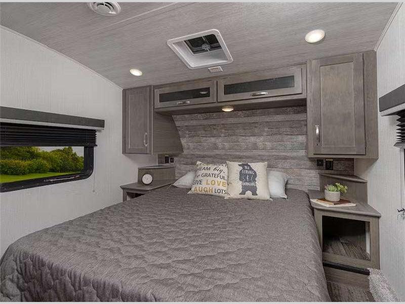 Sleeps 3 Slides 1 Length 28 ft 11 in Ext Height 12 ft 7 in Hitch Weight 1345 lbs Dry Weight 7474 lbs Cargo Capacity 2026 lbs Fresh Water Capacity 54 gals Grey Water Capacity 60 gals Black Water Capacity 30 gals Tire Size ST225/75R15E Available Beds Queen Refrigerator Type 12 Volt Refrigerator Size 10.4 cu ft Cooktop Burners 3 Number of Awnings 1 LP Tank Capacity 30 lbs. Water Heater Type Girard Tankless On Demand AC BTU 15000 btu TV Info LR 40" LED TV Awning Info 16' Electric w/Gas Strut Arm and Dotless Neon Style LED Lighting Axle Count 2 Number of LP Tanks 2 Shower Type Standard Electrical Service 50 amp Similar Floorplans
