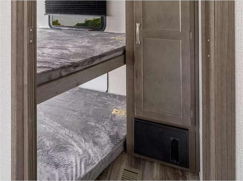 Sleeps 10 Slides 1 Length 31 ft 11 in Ext Height 12 ft 7 in Hitch Weight 1390 lbs Dry Weight 7646 lbs Cargo Capacity 1854 lbs Fresh Water Capacity 54 gals Grey Water Capacity 60 gals Black Water Capacity 30 gals Tire Size ST225/75R15E Number Of Bunks 3 Available Beds Queen Refrigerator Type 12 Volt Refrigerator Size 10.4 cu ft Cooktop Burners 3 Number of Awnings 1 LP Tank Capacity 30 lbs. Water Heater Type Girard Tankless On Demand AC BTU 15000 btu TV Info LR 40" LED TV Awning Info 20' Electric w/ Gas Strut Arm and Dotless Neon Style LED Lighting Axle Count 2 Number of LP Tanks 2 Shower Type Standard Electrical Service 50 amp Similar Floorplans