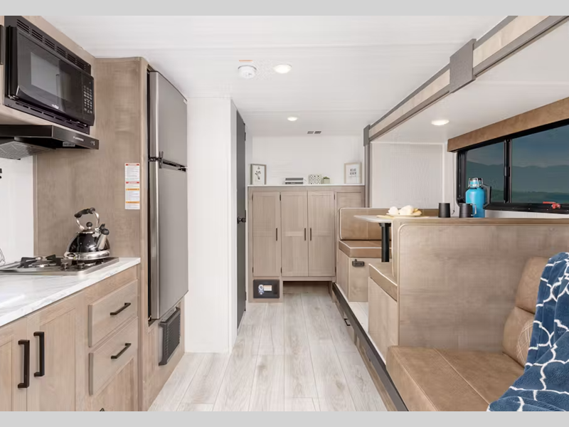 Sleeps 7 Length 22 ft 10 in Ext Width 8 ft Ext Height 10 ft 4 in Interior Color Maple Hitch Weight 515 lbs Dry Weight 3961 lbs Cargo Capacity 4339 lbs Fresh Water Capacity 21 gals Grey Water Capacity 30 gals Black Water Capacity 30 gals Tire Size ST205/75R14D Furnace BTU 20000 btu Number Of Bunks 2 Available Beds Queen Murphy Refrigerator Type 12V Refrigerator Size 7.7 cu ft Cooktop Burners 2 Number of Awnings 1 LP Tank Capacity 20 lbs Water Heater Type Tankless Awning Info 15' Power Axle Count 1 Number of LP Tanks 1 Shower Type Standard Electrical Service 30 amp Similar Floorplans