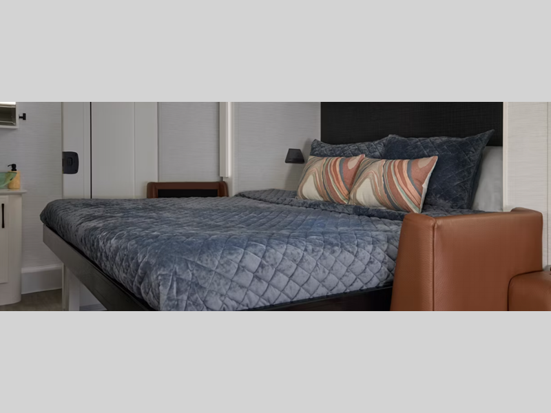 The Full-Paint Masterpiece Finish with cut and buff is sure to turn heads as you travel down the highway, and there is a rear 5k lb. hitch for your towing needs. Smart Level hydraulic leveling jacks will make it easier than ever to set up camp, giving you more time to relax under the Girard teardrop side awning. Once inside, you will enjoy the super polished solid surface countertop in the kitchen, the pillowtop mattress in the bedroom, and the Aqua Miser shower system in the bath.