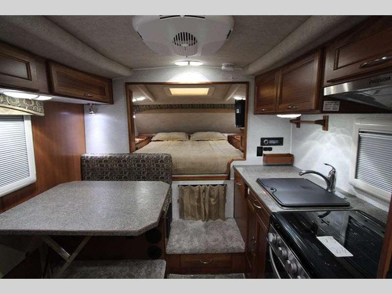 Sleeps 3 Length 18 ft 2 in Ext Width 8 ft 2 in Ext Height 8 ft 10 in Int Height 6 ft 8 in Dry Weight 3435 lbs Fresh Water Capacity 36 gals Grey Water Capacity 40 gals Black Water Capacity 18 gals Furnace BTU 20000 btu Available Beds Queen Refrigerator Type Two Way Refrigerator Size 6.3 cu ft Cooktop Burners 3 Number of Awnings 2 Floor Length 10 ft 11 in Center of Gravity Front 48 in LP Tank Capacity 40 lbs Water Heater Capacity 6 gal Water Heater Type DSI AC BTU 10000 btu Truck Bed Size Long TV Info LR LCD TV Screen 12V Awning Info 10' Side, 7' Power Rear Body Style Hard-Side Shower Type Wet/Bath Shower -