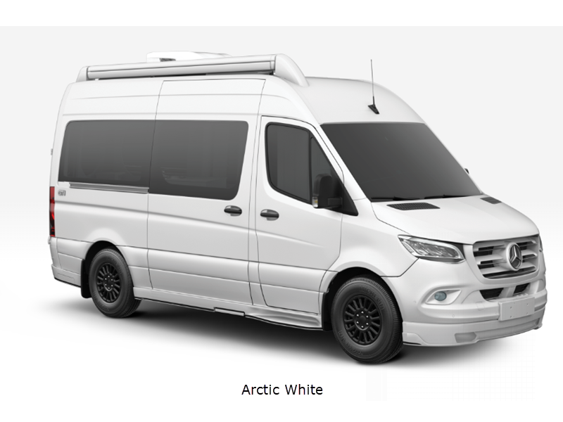 Sleeps 2 Length 24 ft 3 in Ext Width 7 ft 8 in Ext Height 10 ft Int Height 6 ft 3 in Interior Color Arctic White, Iridium Silver, Obsidian Black Exterior Color Terrain, Carbon Hitch Weight 5000 lbs GVWR 11030 lbs Fresh Water Capacity 33 gals Grey Water Capacity 24 gals Black Water Capacity 10 gals Tire Size LT215/85R 16 Fuel Type Diesel Engine Mercedes-Benz 2.0L 4 Cylinder Twin Scroll Turbo Chassis Mercedes Benz 3500 Sprinter Horsepower 208 hp Fuel Capacity 24.5 gals Wheelbase 170 in Torque 332 ft-lb Refrigerator Type 12V Refrigerator Size 3.1 cu ft Cooktop Burners 1 Number of Awnings 1 Water Heater Type Bypass AC BTU 15000 btu TV Info Cab 32" TV Awning Info Girard Side-mounted Powered Patio Gross Combined Weight 15250 lbs Shower Type Wet/Bath Shower Electrical Service 30 amp