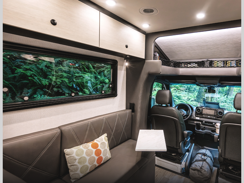 You will stay powered up by the diesel generator and 270Ah Battleborn lithium battery pack, and there are optional solar panels for even more power. Inside, the black powder coated aluminum cabinetry throughout will stand up over the test of time, and there are many comforts you won't want to camp without, such as a full galley kitchen and convenient wet bath!