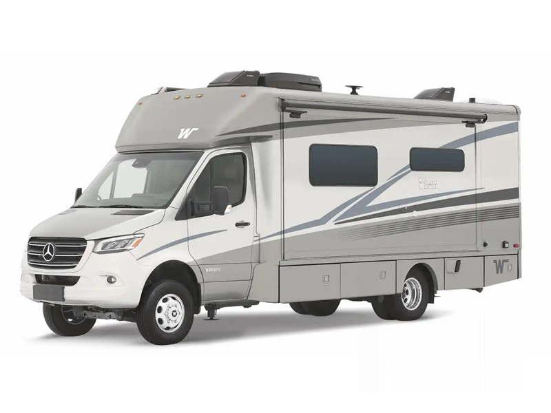 Sleeps 4 Slides 1 Length 25 ft 8 in Ext Width 7 ft 7 in Ext Height 10 ft 7 in Int Height 6 ft 8 in Interior Color Hygge Haus ll, Mod Allure ll Exterior Color Dune Frost, Misty Lake, Precious Metals, Smokehouse Hitch Weight 5000 lbs GVWR 11030 lbs Fresh Water Capacity 35 gals Grey Water Capacity 46 gals Black Water Capacity 47 gals Furnace BTU 25000 btu Fuel Type Diesel Engine 2.0L High Output Turbo Diesel 4-Cylinder Chassis Mercedes-Benz RWD Sprinter Fuel Capacity 24.5 gals Wheelbase 170 in Number Of Bunks 1 Available Beds Twin Beds with King Conversion Refrigerator Type 12V Two Door Compressor Driven Refrigerator Size 10 cu ft Convection Cooking Yes Cooktop Burners 2 Shower Size 25" x 30" Number of Awnings 1 Axle Weight Front 4410 lbs Axle Weight Rear 7720 lbs LP Tank Capacity 50.76 Water Heater Type Truma AquaGo Comfort Plus Tankless AC BTU 15000 btu Basement Storage 80.9 cu. ft. TV Info 32" LED HDTV, BR 24" LED HDTV Awning Info 16' Power with LED Lights & Bluetooth Control Gross Combined Weight 15250 lbs Shower Type Standard Electrical Service 30 amp Similar Floorplans